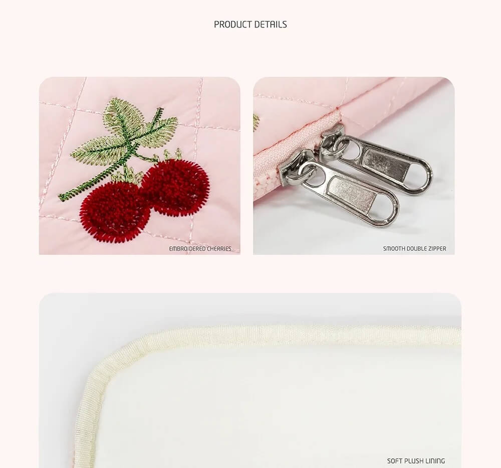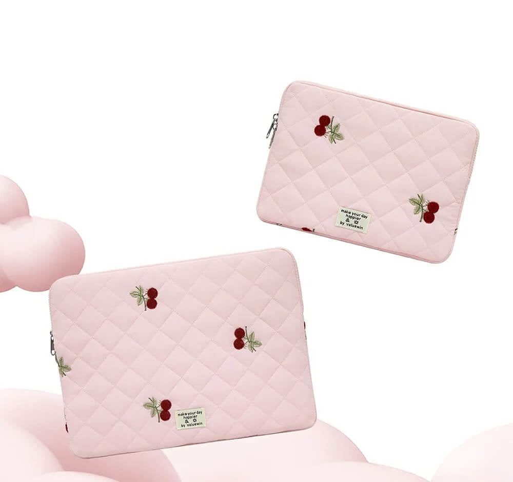 Ne cherchez plus. Voici la housse pour ordinateur et tablette Cerise Rose, notre petit bijou rose poudré aux broderies cerises adorables, qui fait déjà craquer toute la communauté Pinterest et TikTok. 📲